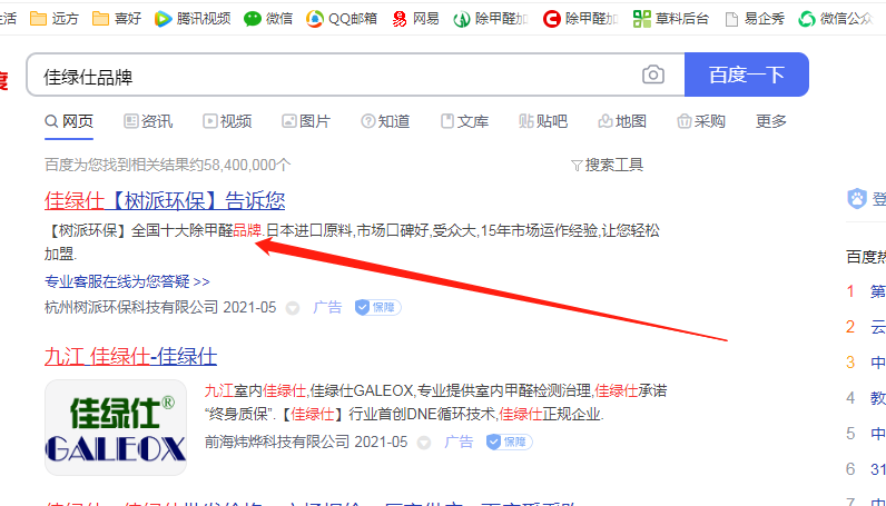 杭州樹派環??萍加邢薰纠梦宜旧虡?佳綠仕"進行百度搜索關鍵詞宣傳,嚴重影響我司合法權益。